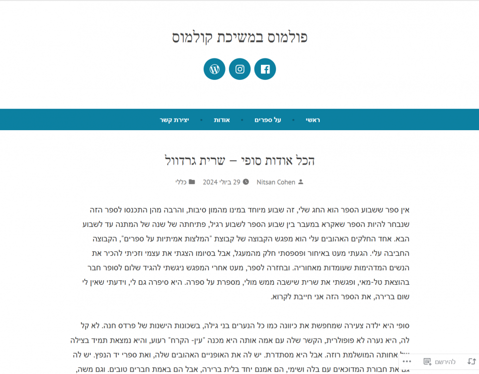 גם אני גדלתי בפרדס חנה של פעם, אבל קצת יותר מאוחר מסופי, בשנות התשעים והאלפיים. אז לא היו מדרכות והלכנו על שביל כורכר לבית הספר, ובית קפה אחד לרפואה לא היה באזור. כמו סופי, גם אני אהבתי מאוד את סדרת יד הנפץ. אבל החוויות הבלתי אמצעיות שלה עם המציאות יכולות לדעתי לקרות רק במציאות הישירה של לפני עידן האינטרנט והסמארטפונים.